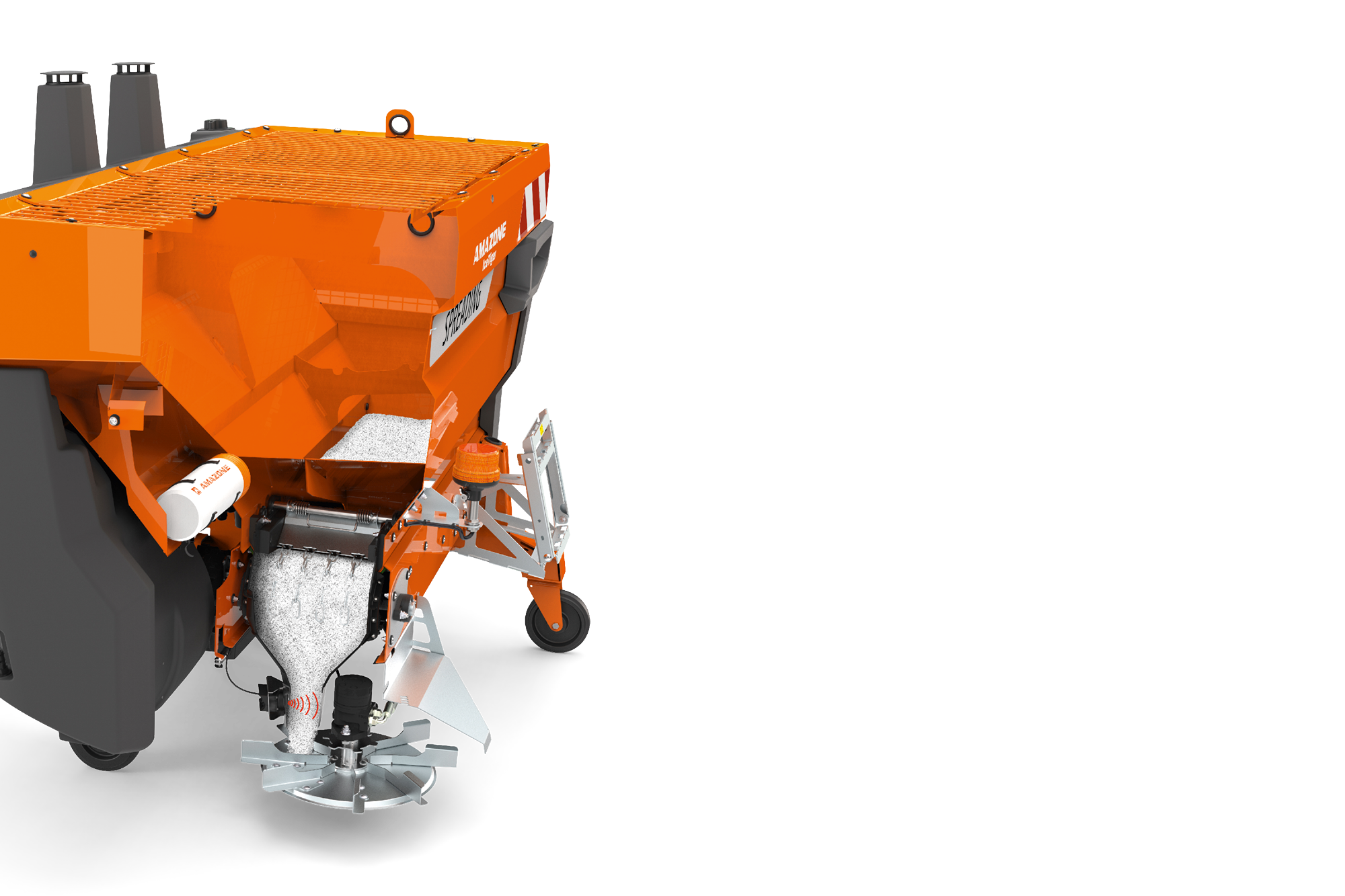 Czujnik radarowy FlowCheck sterowanego przez ISOBUS rozsiewacza IceTiger o pojemności zbiornika 1000 l lub większej umożliwia wczesne wykrywanie zatorów. Komunikat na terminala ISOBUS natychmiast informuje użytkownika o wystąpieniu blokad, np. w wyniku zastosowania lepkiej wstępnie zwilżonej soli.