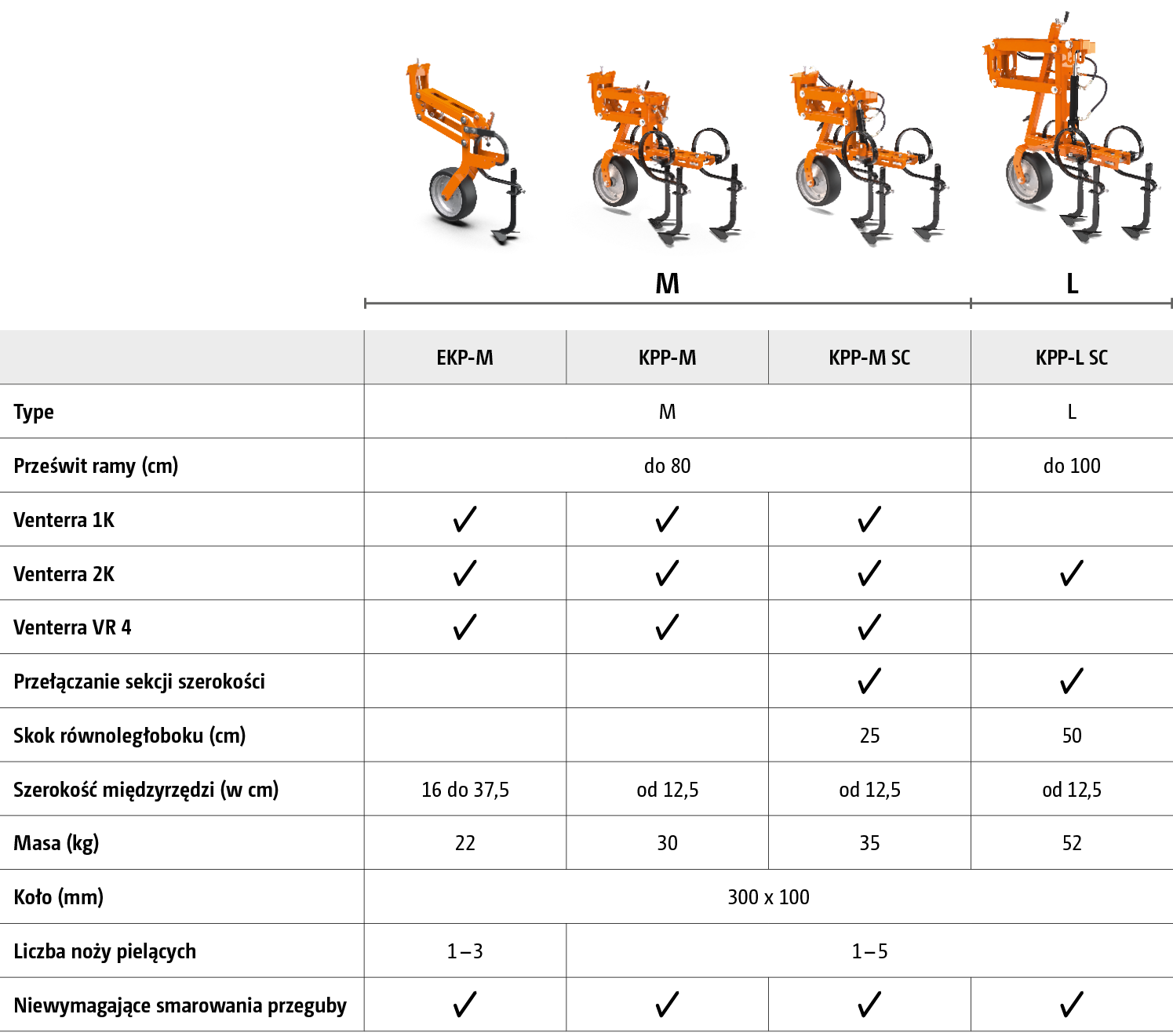 Centralnym elementem pielnika jest równoległobok. Każdy równoległobok jest indywidualnie zawieszony i precyzyjnie prowadzi narzędzia pielące między rzędami upraw. Noże pielące skutecznie zwalczają chwasty, a tarcze osłonowe zapobiegają zasypywaniu drobnych roślin w rzędzie. Pielniki palcowe z kolei usuwają chwasty w rzędzie – bez uszkadzania upraw. Brona chwastownik wyczesuje chwasty i usuwa ziemię z ich korzeni. Dzięki bardzo dużemu prześwitowi ramy i opcji unoszenia poszczególnych równoległoboków, Venterra jest idealna do mechanicznego zwalczania chwastów w uprawach!