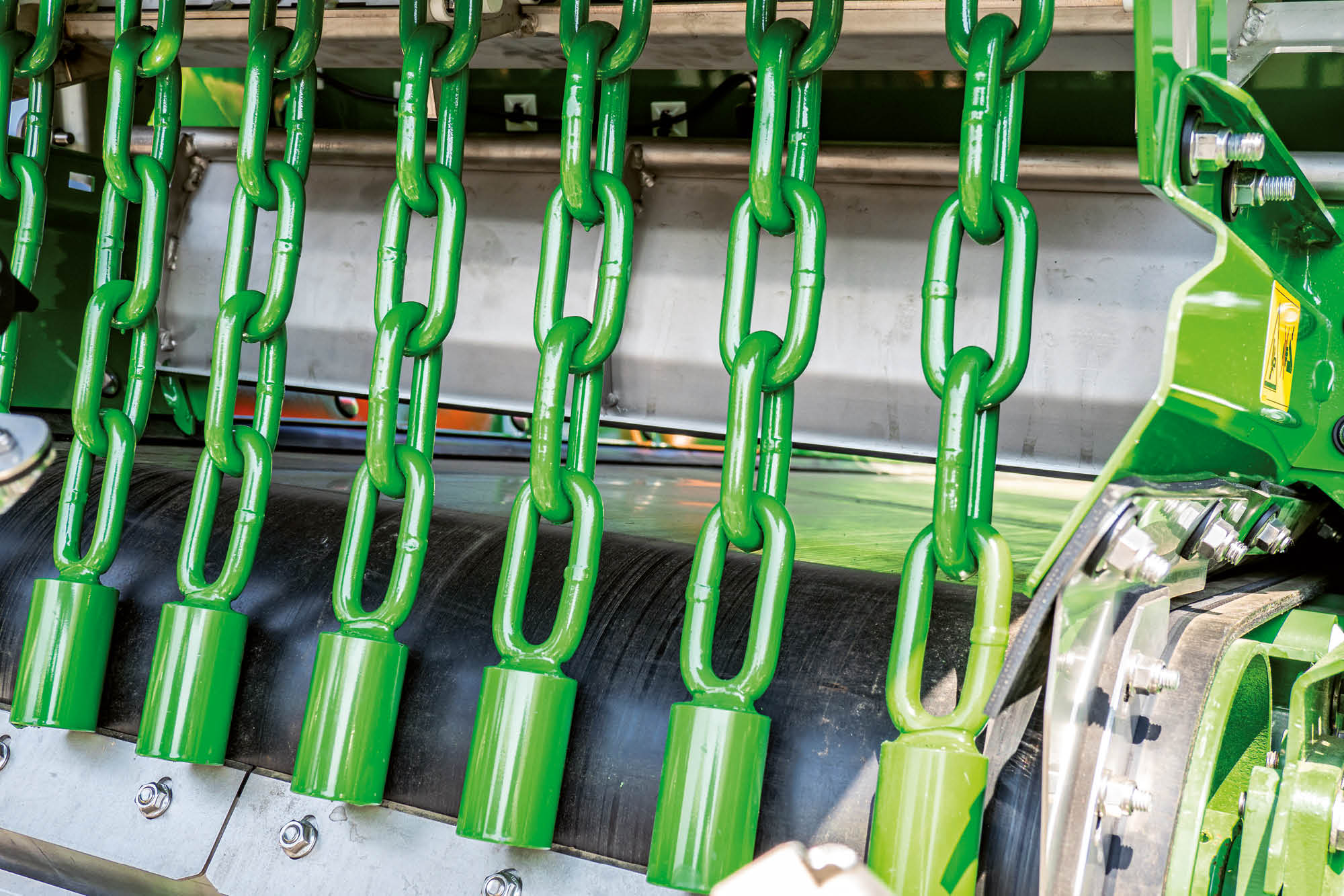 Wyposażenie ZG-TX do rozsiewu wapna z aktywnym łańcuchem rozdrabniającym i podwójną zasuwą w pozycji nieaktywnej