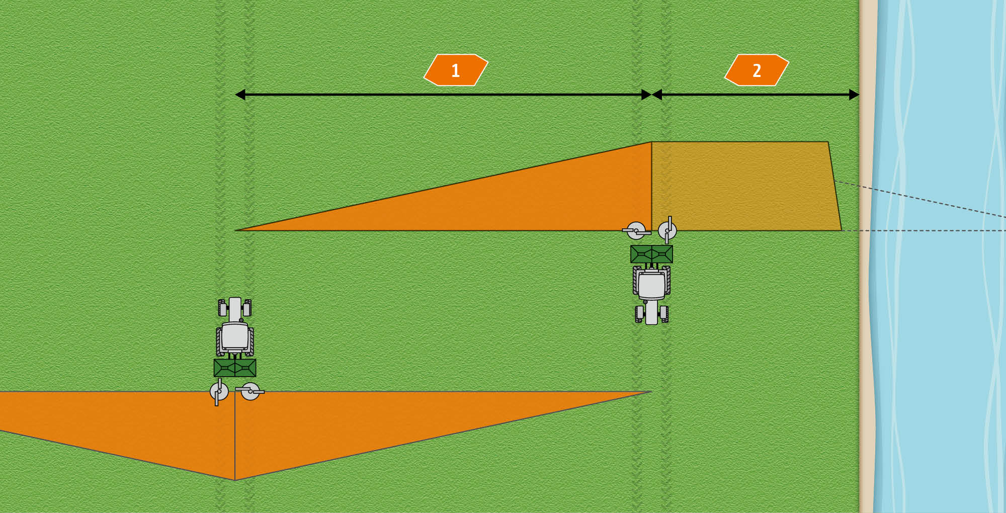 Jeżeli bezpośrednio na skraju pola znajduje się woda powierzchniowa, podczas nawożenia zgodnie z rozporządzeniem o nawożeniu należy zachować określoną odległość od zbiornika wodnego. W tym przypadku nadmiarowy wyrzut nawozu jest redukowany w połączeniu z zasuwą dozującą.