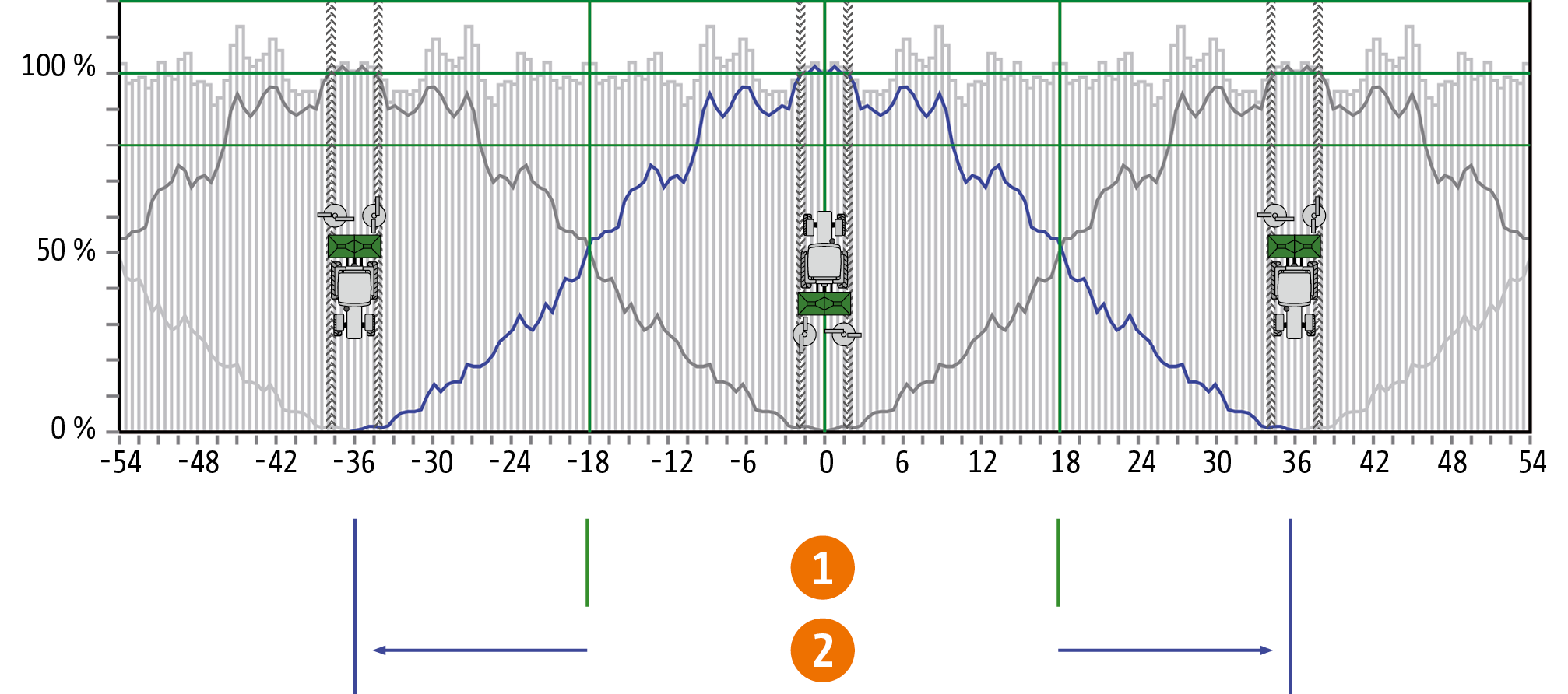 - Rozkład poprzeczny (szerokość robocza 36 m)
