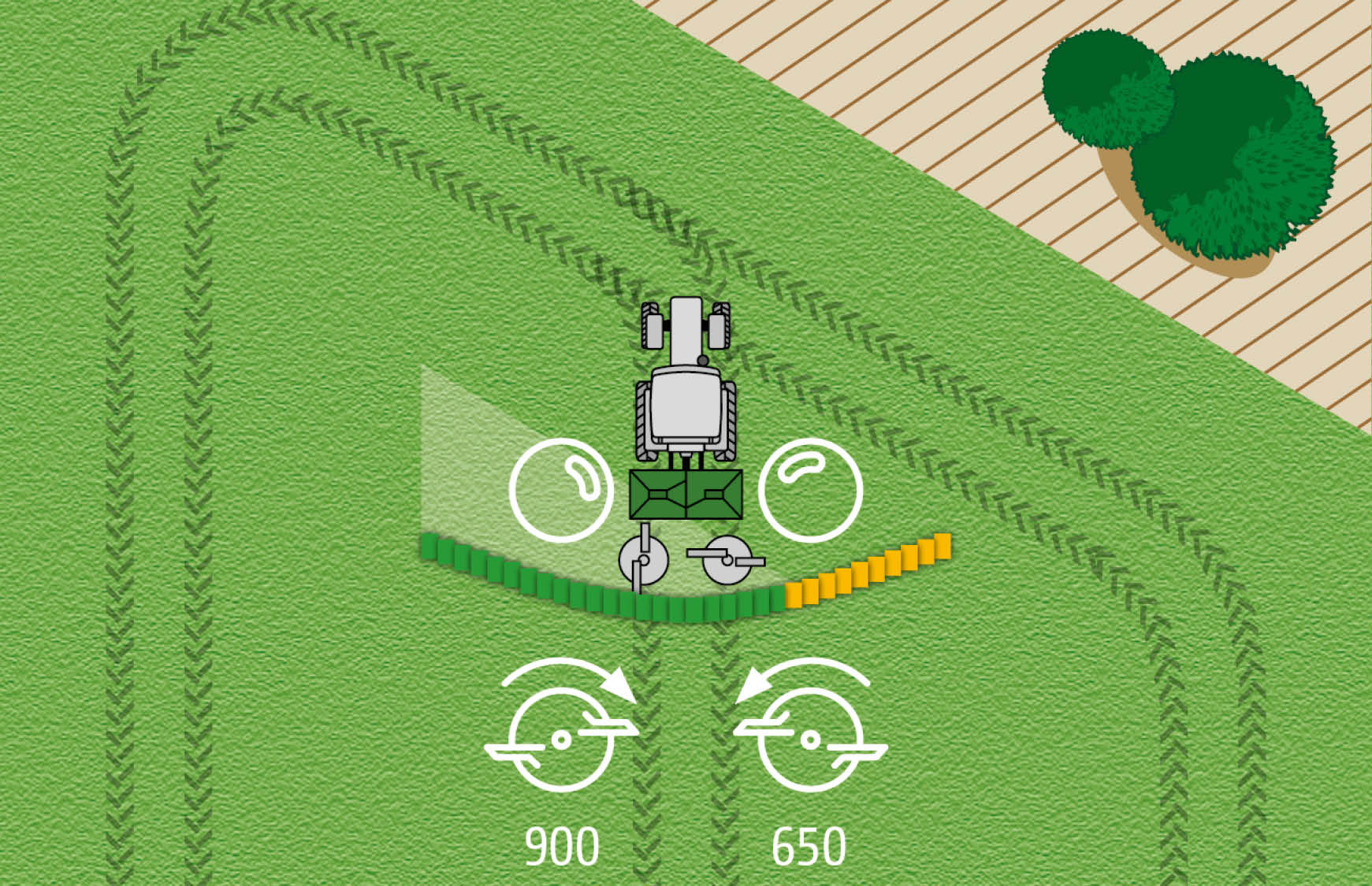 Jeśli terminal obsługowy posiada funkcję Section Control, jak np. przełączanie sekcji szerokości GPS-Switch firmy AMAZONE, to mogą być one przełączane całkowicie automatycznie w zależności od pozycji GPS. Jeśli utworzono pole, kierowca może w trybie automatycznym w pełni skoncentrować się na obsłudze pojazdu, ponieważ sekcje szerokości są przełączane automatycznie w klinach i na poprzeczniakach.