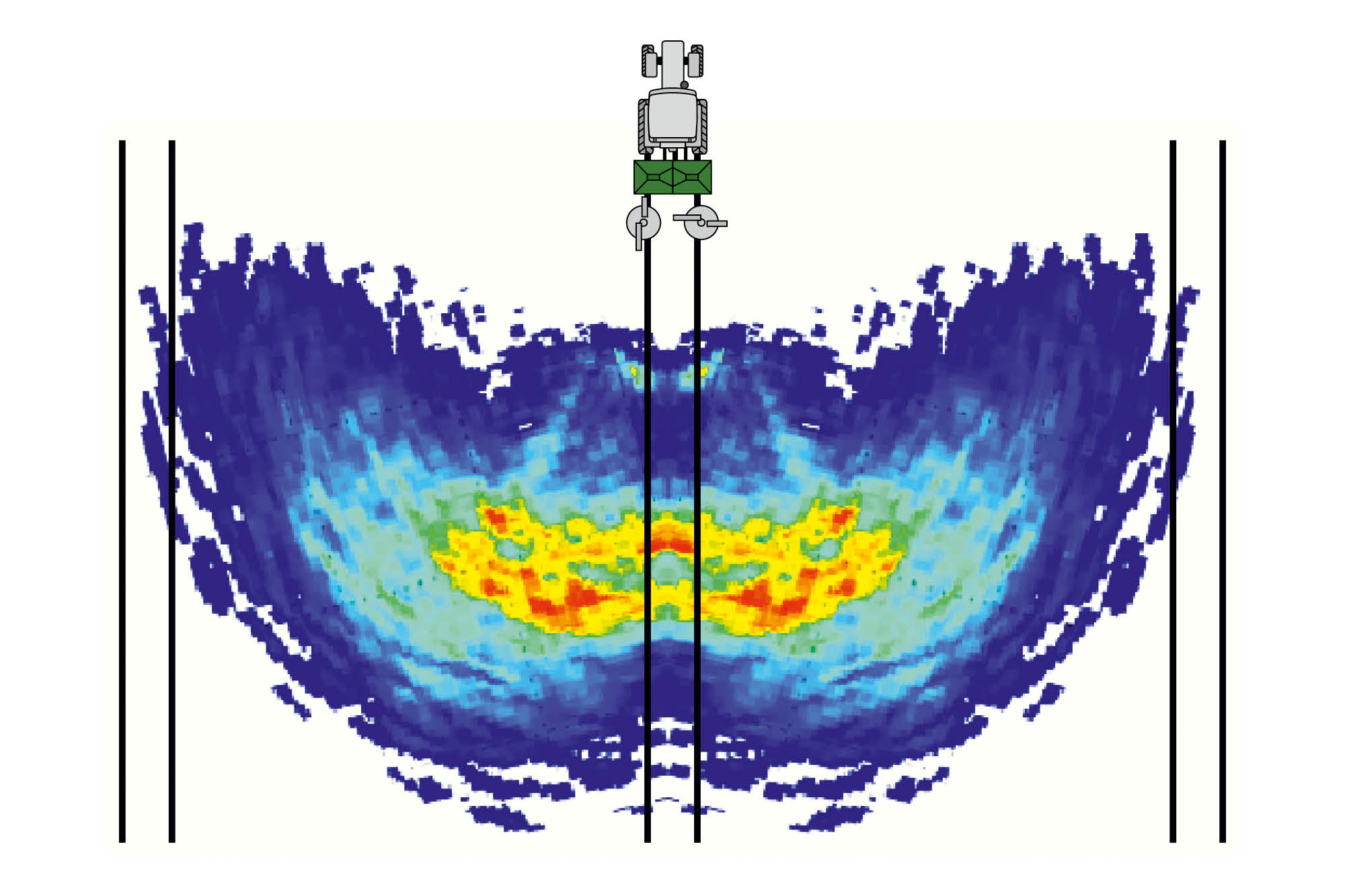 Ze względu na nerkowaty kształt otworu dozującego wachlarz rozsiewu pozostaje stabilny i precyzyjny również przy zmiennych prędkościach roboczych. Tym samym nie ma potrzeby dostosowania pozycji systemu dozowania.