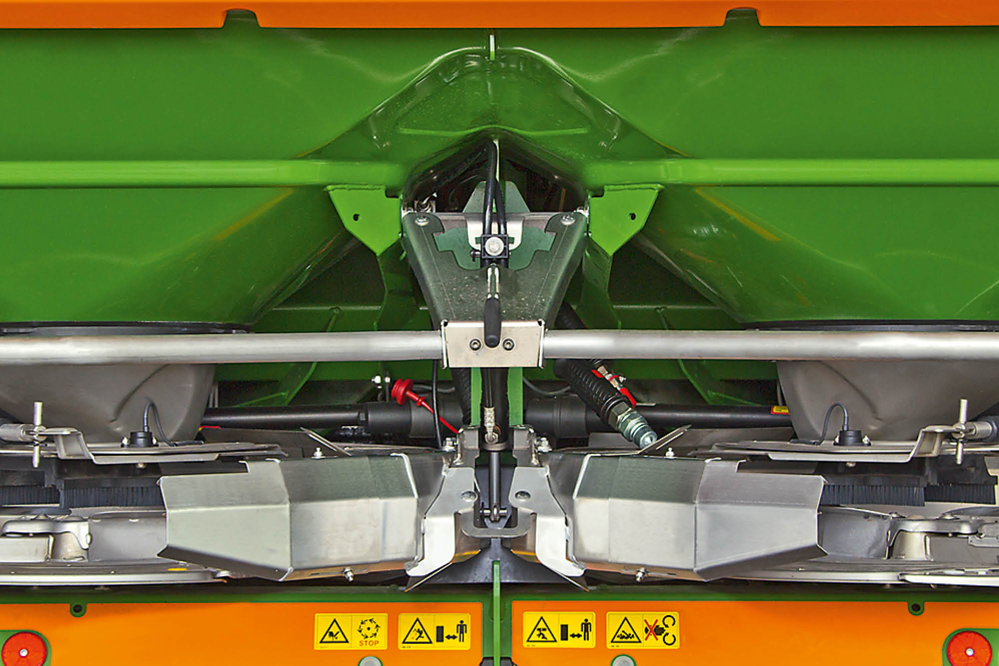 AMAZONE oferuje unikalną opcję rozsiewacza przedniego dla klientów, którzy chcą dokładnie rozsiewać dwa różne nawozy mineralne w jednym przejeździe roboczym. W odróżnieniu od stosowania nawozów mieszanych w jednym rozsiewaczu nawozów, w tym wariancie każdy rozsiewacz może być optymalnie dopasowany do właściwości danego nawozu. W ten sposób uzyskuje się doskonały rozkład poprzeczny obu nawozów. Możliwe jest również nawożenie za pomocą dwóch różnych kart aplikacyjnych.