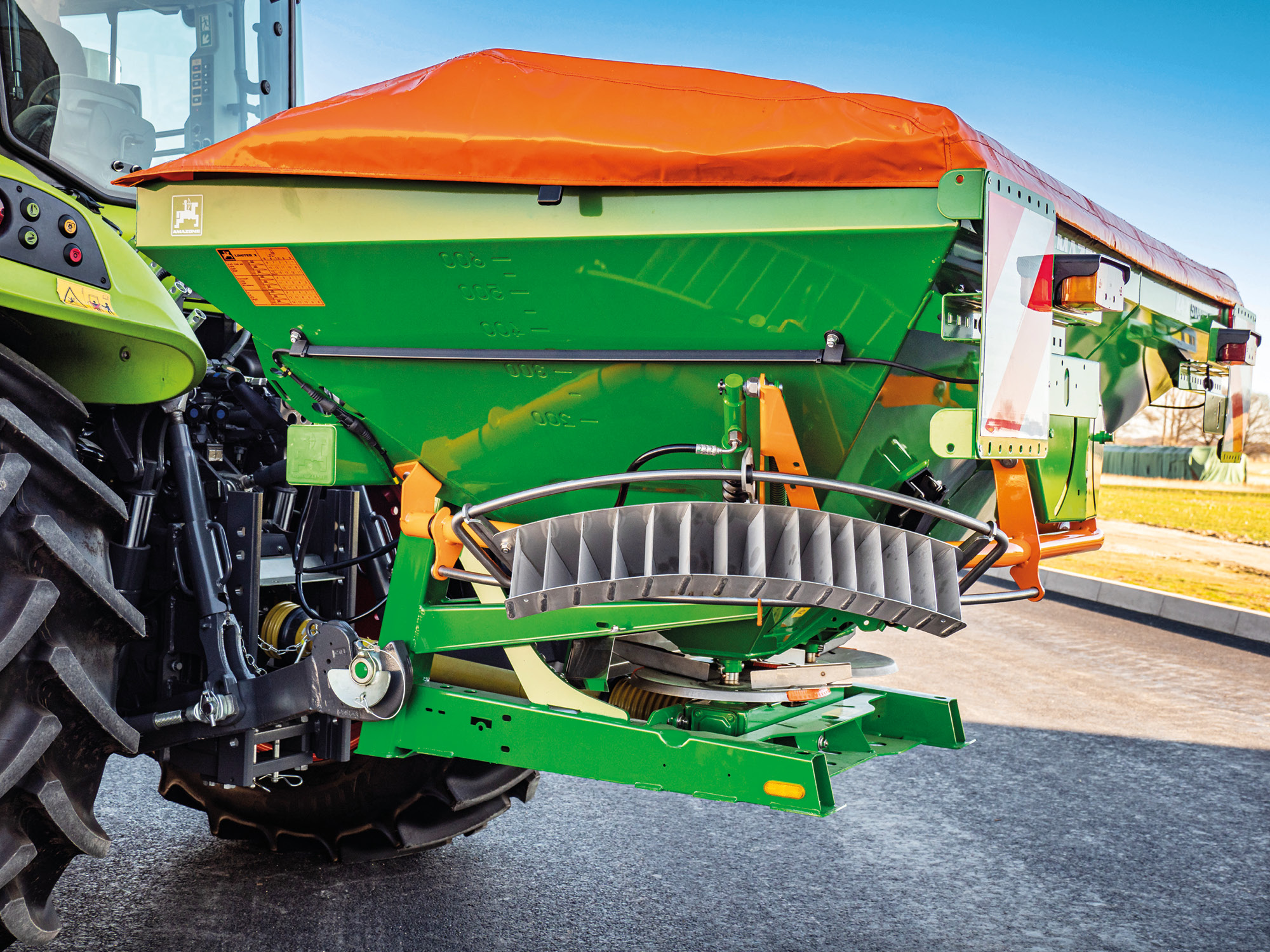 Jeśli pole graniczy z drogą lub ścieżką dla rowerów, to nawóz nie może wydostawać się poza granice pola. Wyrzut nawozu jest dostosowywany w połączeniu z zasuwą dozującą.