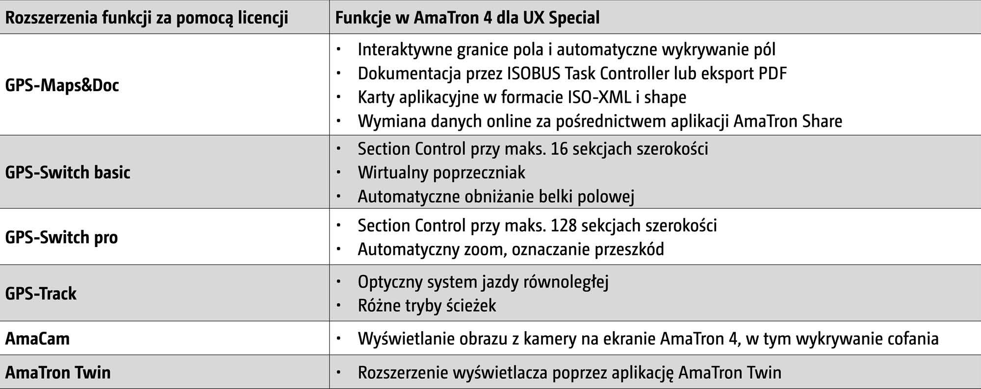 - Automatyczne przełączanie sekcji szerokości z 128 sekcjami, szczególnie dla techniki ochrony roślin z indywidualnym przełączaniem rozpylaczy