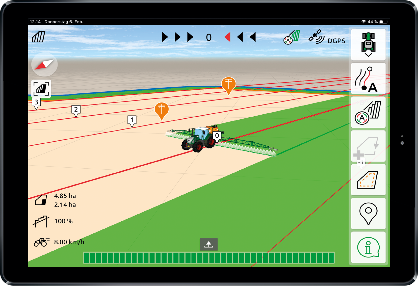 W postaci funkcji automatycznego przełączania sekcji szerokości GPS-Switch firma AMAZONE oferuje oparte na GPS, w pełni automatyczne przełączanie sekcji szerokości dla wszystkich terminali obsługowych AMAZONE oraz rozsiewaczy nawozów, opryskiwaczy polowych lub siewników obsługujących system ISOBUS.
