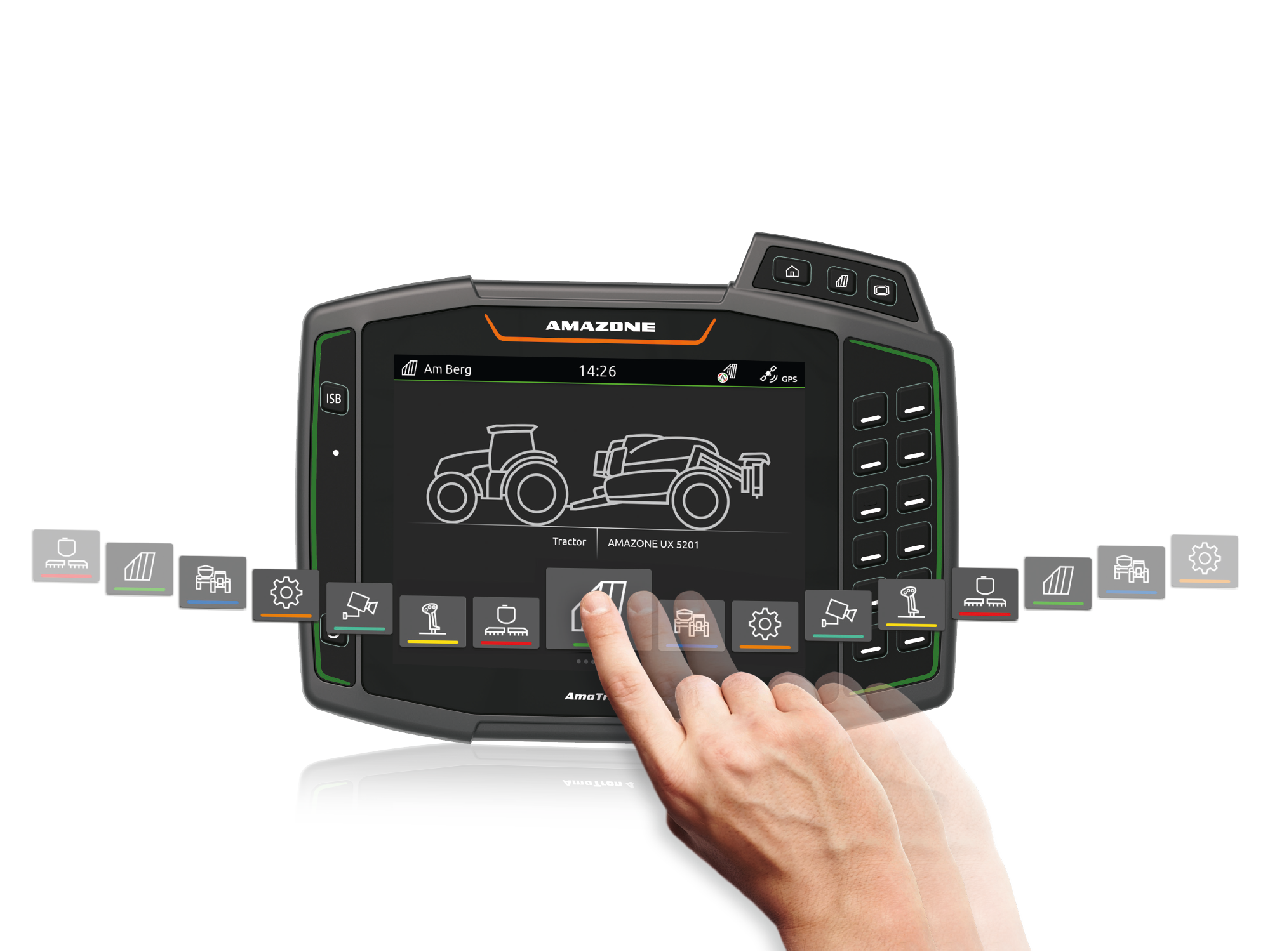 W postaci automatycznego przełączania sekcji szerokości GPS-Switch, firma AMAZONE oferuje oparte na GPS, w pełni automatyczne przełączanie sekcji szerokości dla wszystkich terminali obsługowych AMAZONE oraz rozsiewaczy nawozów, opryskiwaczy polowych lub siewników obsługujących system ISOBUS.