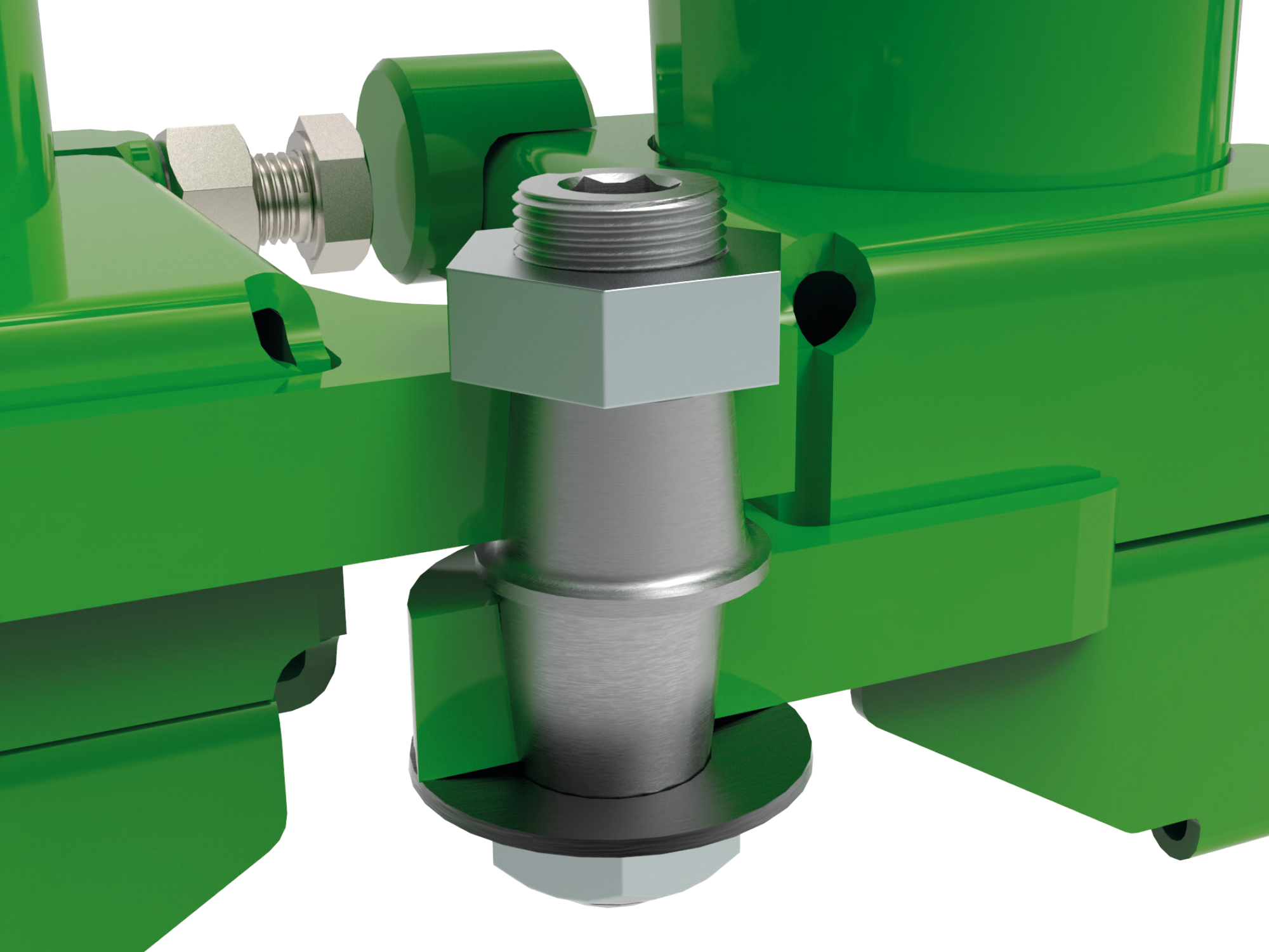 Długoletnie doświadczenie w budowie belek polowych przekłada się na ich trwałość: stożkowy sworzeń przegubu to inteligentne centrum przemyślanej filozofii belki polowej! Belka polowa spoczywa bez luzów na stożkowych sworzniach i także po wielu latach zapewnia użytkownikowi optymalne funkcjonowanie.