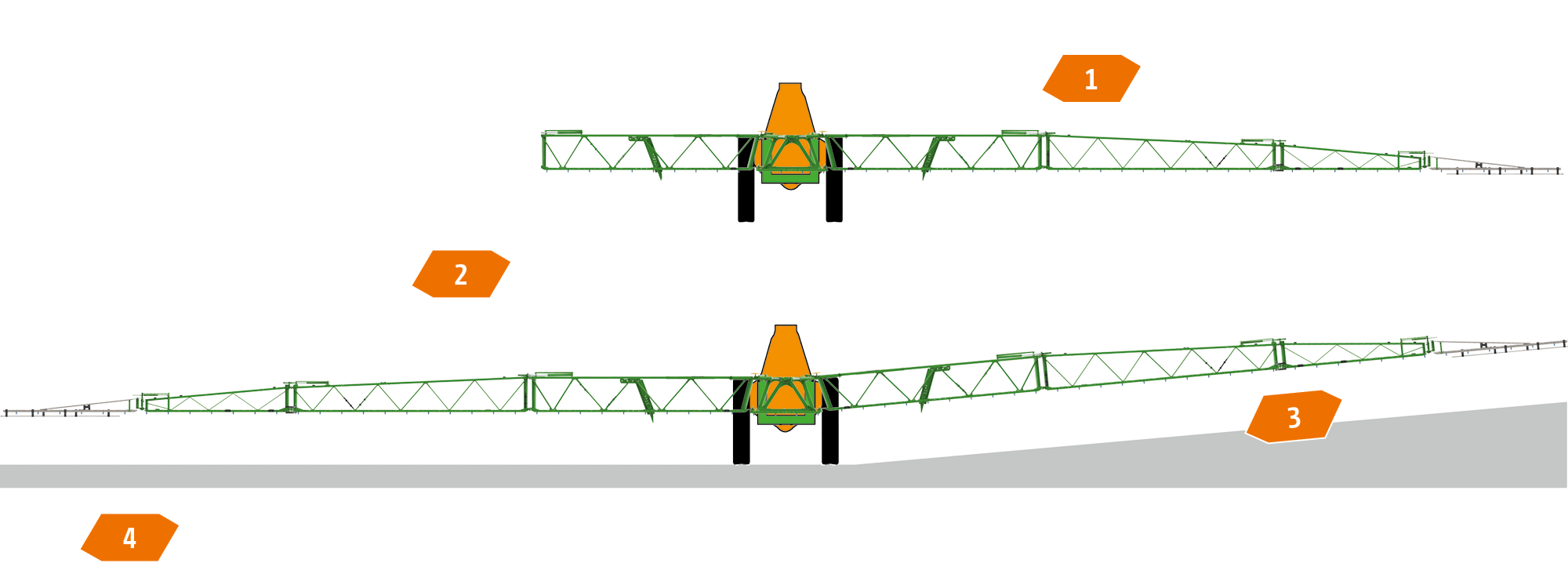 Za pomocą automatycznego standardowego podnoszenia belki polowej AutoLift jest ona podnoszona na żądaną wysokość przy każdym wyłączeniu oprysku. Przy rozpoczęciu oprysku ponownie obniża się do docelowej wysokości. Eliminuje to zagrożenie uszkodzenia belki polowej na nawrotach.