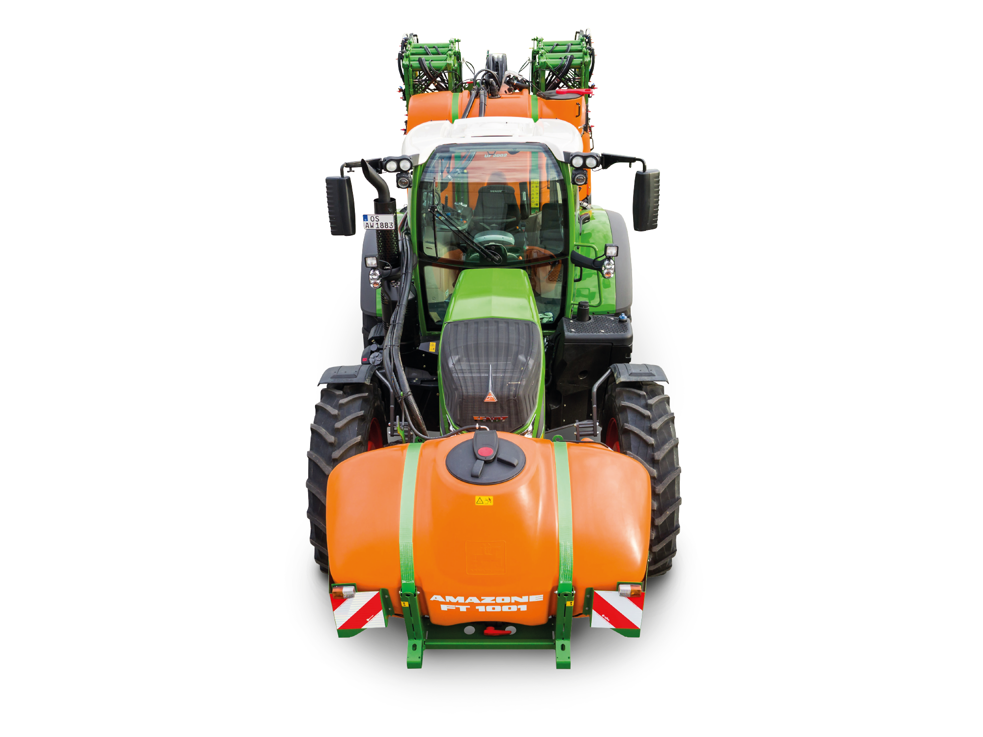 Zbiornik przedni FT jest w 100% zintegrowany z opryskiwaczem zawieszanym, gdzie współpraca między obydwoma komponentami odbywa się w poprzez terminal ISOBUS za pośrednictwem elektronicznego systemu zarządzania obiegiem cieczy FlowControl+. Techniczną bazą FlowControl+ są elektroniczne mierniki stanu napełnienia w obu zbiornikach oraz dwa wysokowydajne inżektory. Wydajność przepływu w obu kierunkach do 200 l/min. Ciecz robocza jest zawsze idealnie homogeniczna.