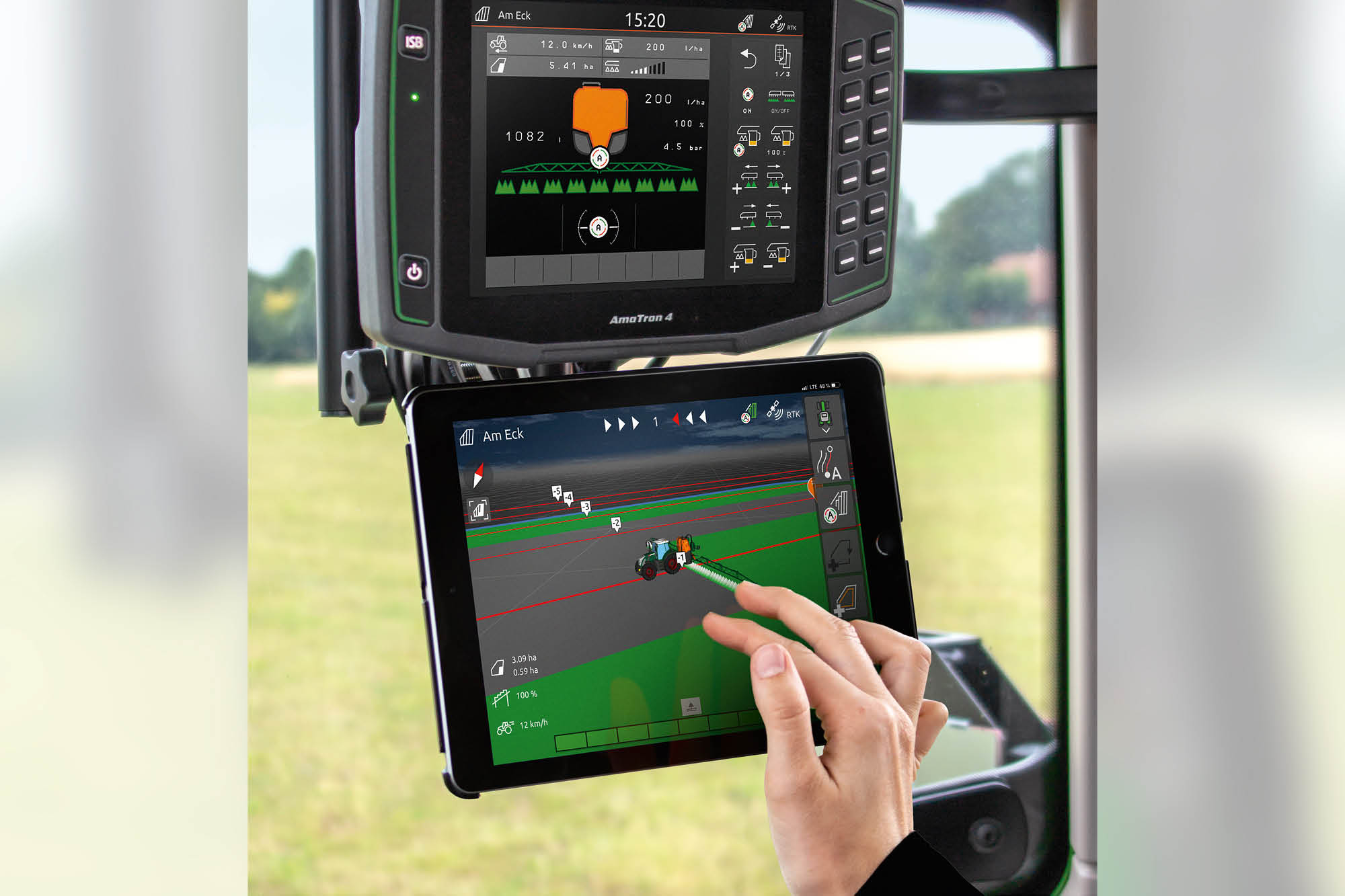 Jeśli terminal obsługowy posiada funkcję Section Control, jak np. przełączanie sekcji szerokości GPS-Switch firmy AMAZONE, to mogą być one przełączane całkowicie automatycznie i w zależności od pozycji GPS. Jeśli utworzono pole, kierowca może w trybie automatycznym w pełni skoncentrować się na obsłudze pojazdu, ponieważ sekcje szerokości są przełączane automatycznie w klinach i na poprzeczniakach.