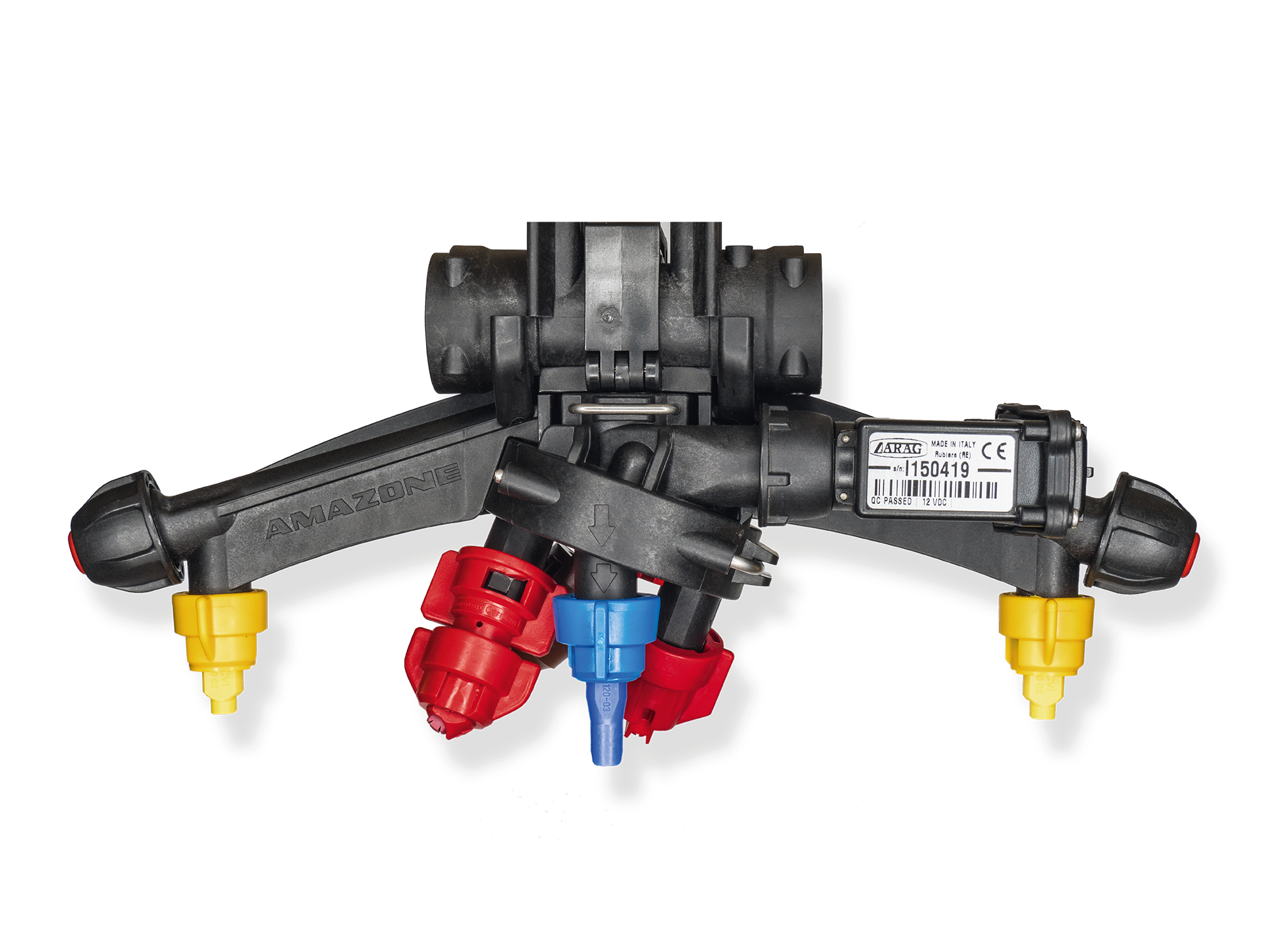 Dodatkowo oprócz korpusu 3-rozpylaczowego, elektryczne przełączanie pojedynczych rozpylaczy AmaSwitch plus można wyposażyć w korpus 4-rozpylaczowy. Dodatkowo za pomocą opcjonalnego zestawu przedłużającego można uzyskać rzeczywisty rozstaw rozpylaczy co 25 cm. Dzięki temu, w połączeniu ze specjalnymi rozpylaczami o stożku oprysku 80 stopni, możliwe jest zmniejszenie odstępu od powierzchni docelowej nawet do wartości mniejszej niż 50 cm.