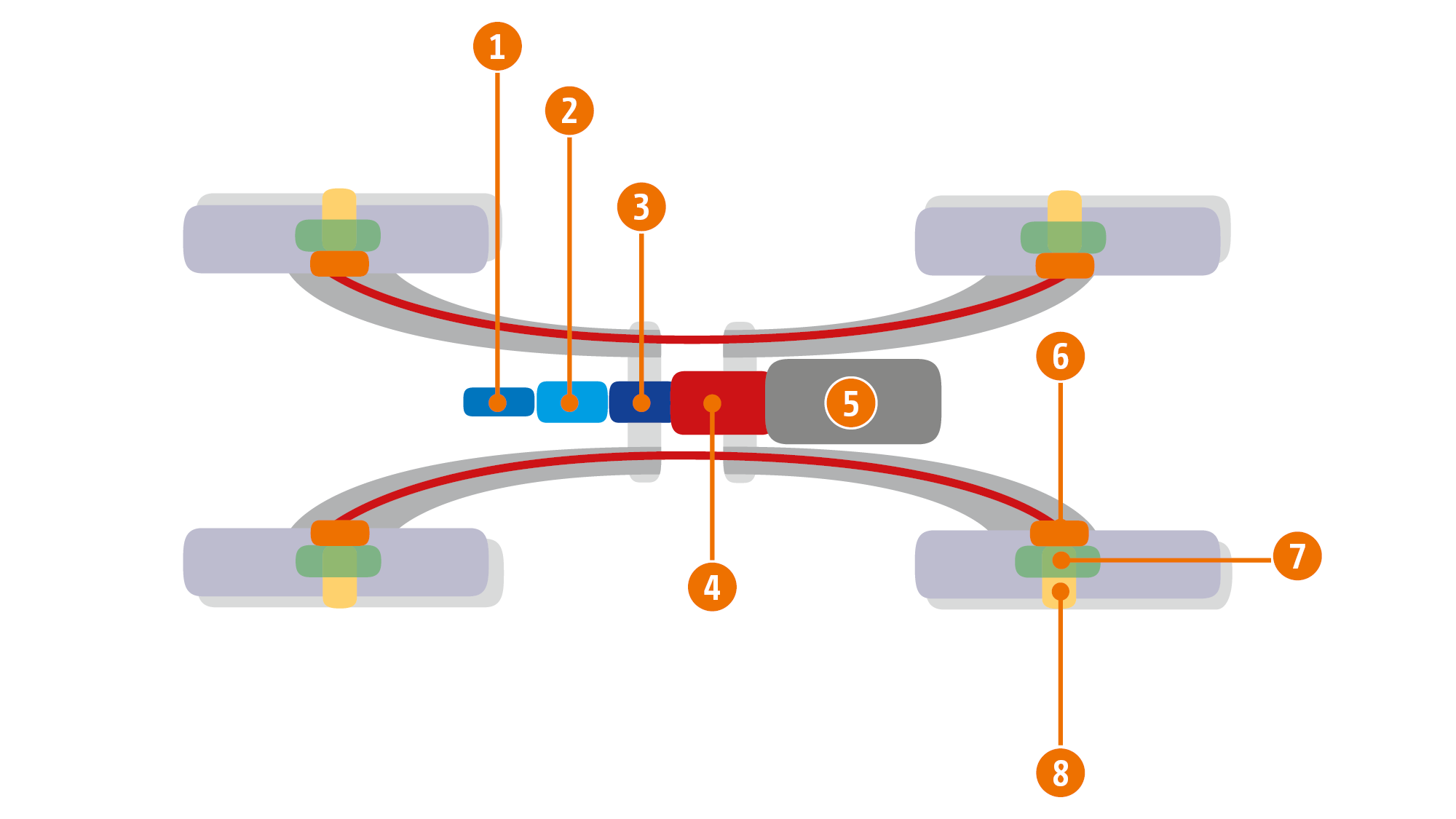 1) 4,50 m 2) 6,50 m Terminal pojazdu AmaDrive 7.0