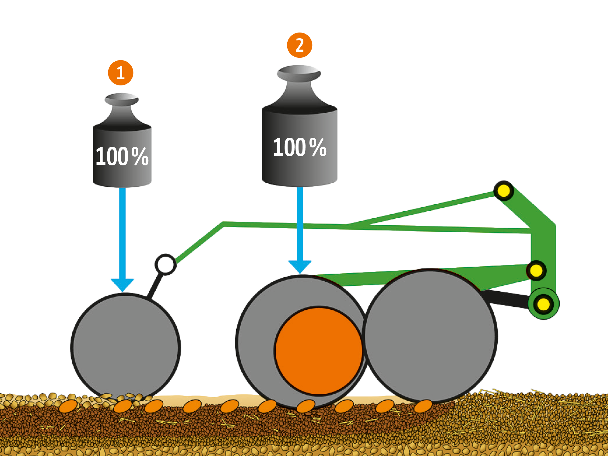 Redlice RoTeC-Control pracują z naciskiem do 35 kg. Ta wartość nacisku odnosi się w rzeczywistości tylko do redlicy, ponieważ nie jest dzielona na rolkę kopiującą i redlicę, jak ma to miejsce w innych rozwiązaniach. Hydrauliczna regulacja nacisku redlic jest seryjna w D9 6000-TC. Przy siewie rzepaku lub roślin wczesnego siewu w czasie suszy można bez problemów pracować także z niewielkim naciskiem redlic.