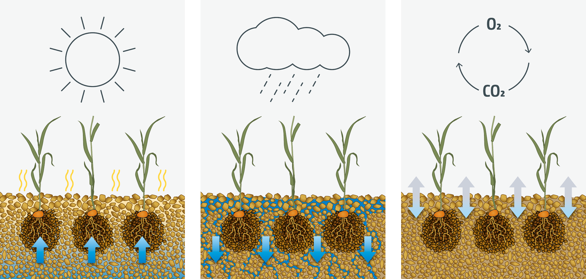 Z kolei w wilgotnych warunkach niezagęszczone pasy między rzędami wysiewu pozostawiają miejsce na infiltrację wody do głębszych warstw. Umożliwia to wystarczającą wymianę gazową, ponieważ istotny dla organizmów tlen może dotrzeć do młodych korzeni, nawet jeśli rozwijają się w głąb. Najlepsze warunki do dobrego kiełkowania i udanego rozwoju młodych roślin.