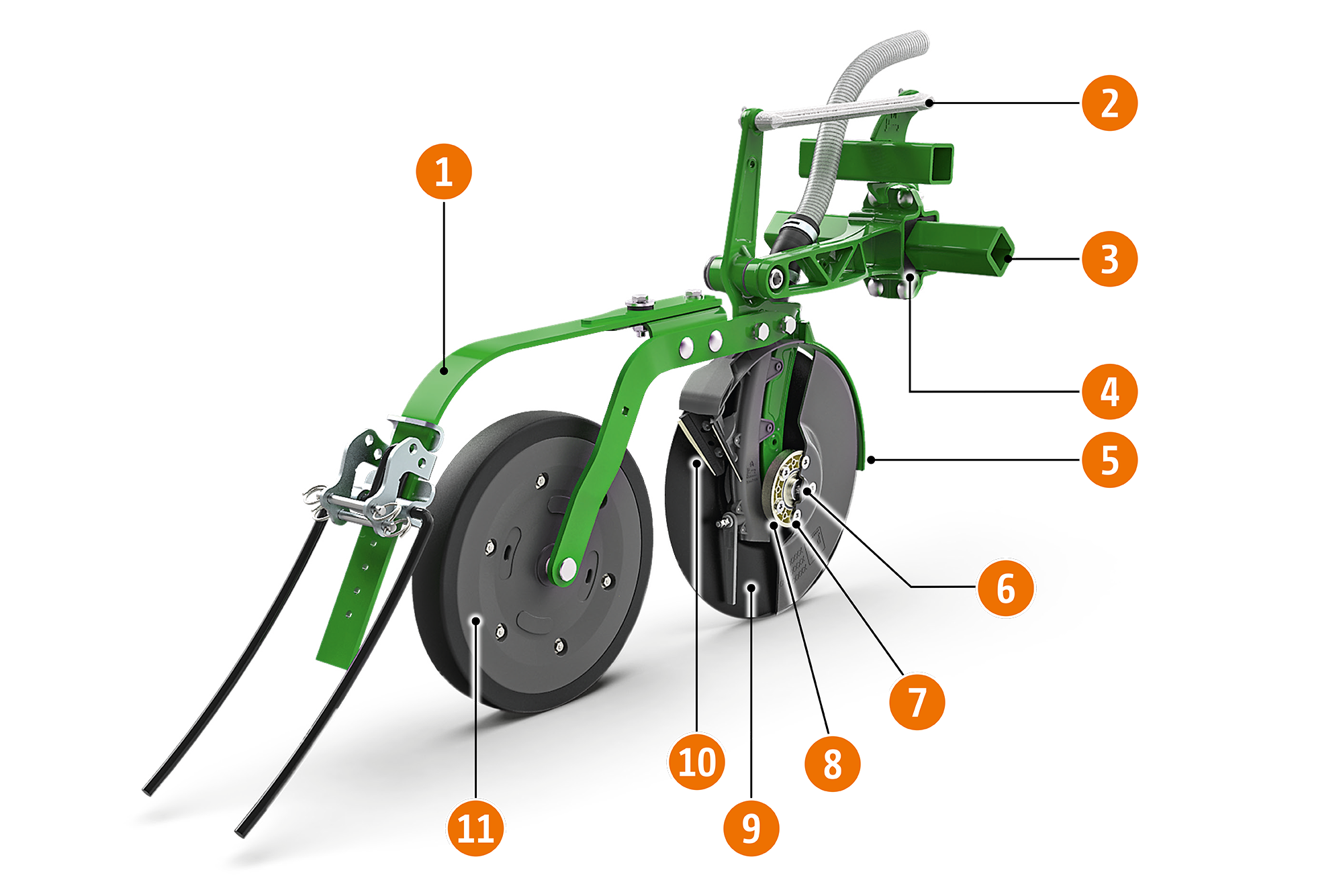 3. Tarcza ograniczająca głębokość i rolka czyszcząca „Control” 25 mm lub 10 mm zapewniają równomierne kopiowanie głębokości.