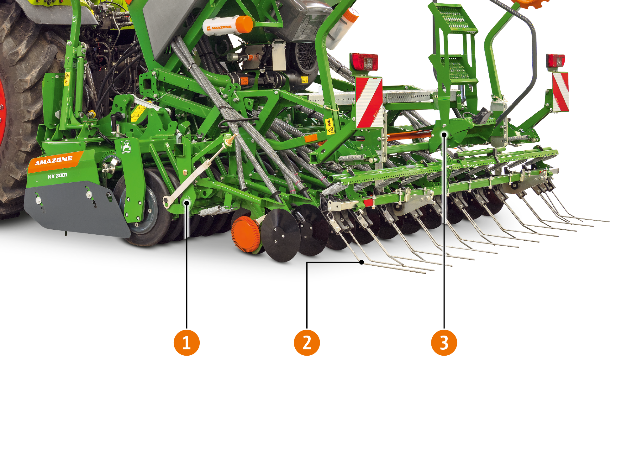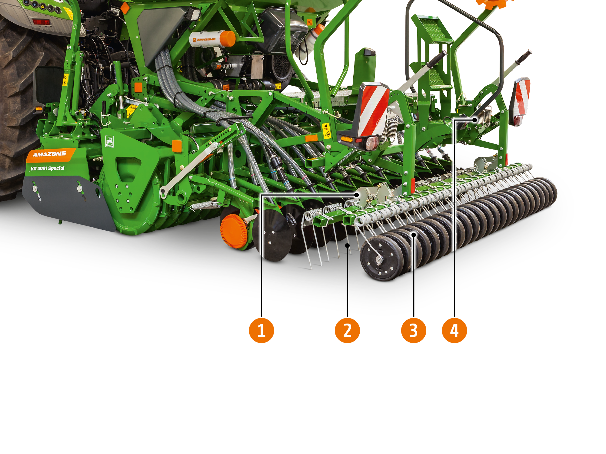 3. Tarcza ograniczająca głębokość i rolka czyszcząca „Control” 25 mm lub 10 mm zapewniają równomierne kopiowanie głębokości.