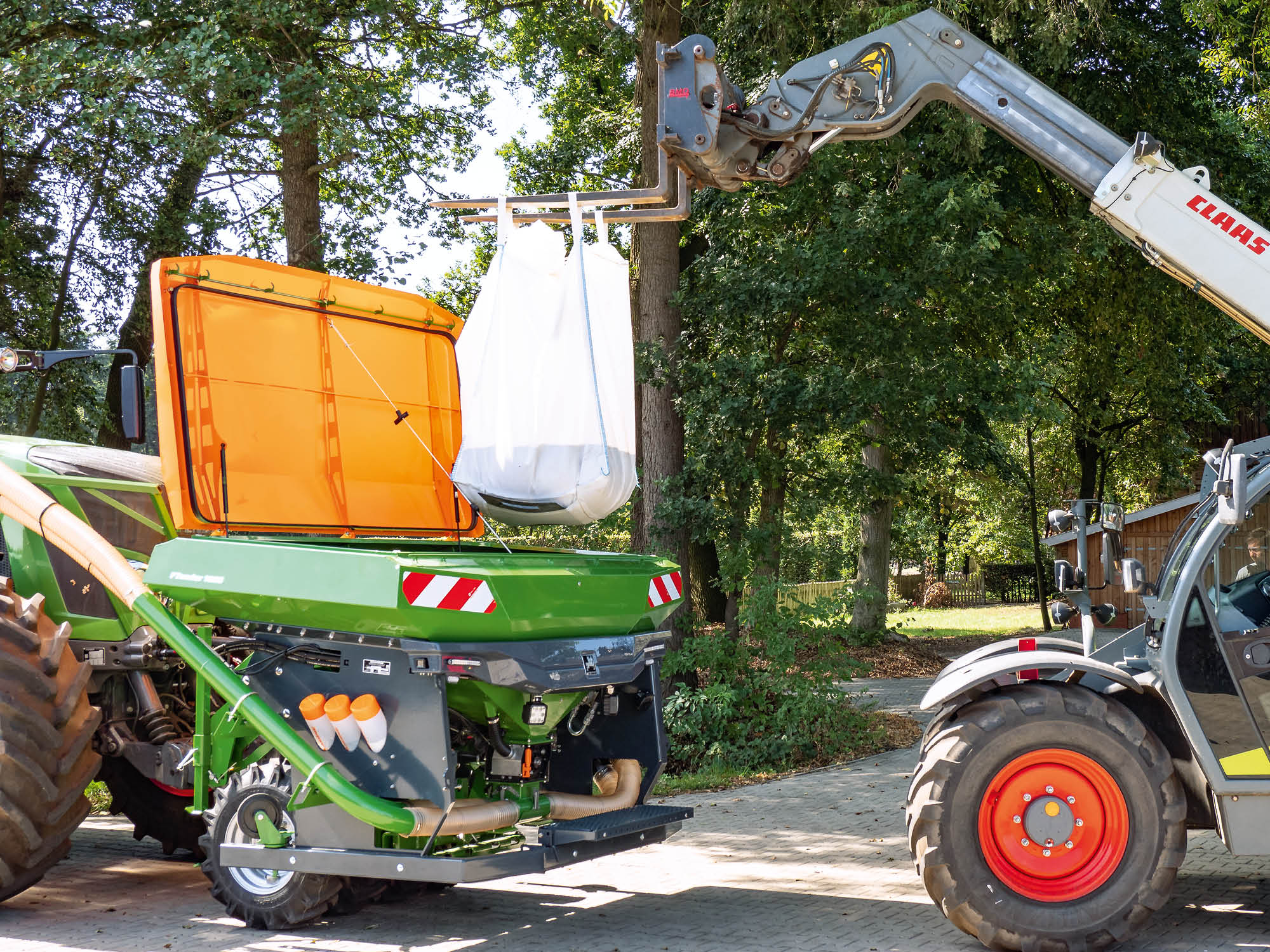 Aby jeszcze bardziej ułatwić kalibrację oraz całkowite opróżnianie, AMAZONE oferuje pakiet Comfort 1 z TwinTerminal 3.0. TwinTerminal jest zamontowany bezpośrednio na przednim zbiorniku. Ta pozycja ma decydującą zaletę: kierowca może wykonywać obsługę oraz wprowadzanie danych dla kalibracji bezpośrednio na maszynie, dzięki czemu nie musi wielokrotnie schodzić z ciągnika i ponownie na niego wchodzić.