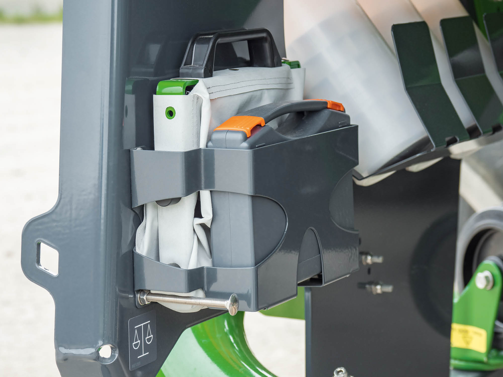 Seryjne środki pomocnicze, takie jak waga kalibracyjna oraz worek kalibracyjny są bezpiecznie schowane w przednim zbiorniku. Przycisk kalibracji lub TwinTerminal umożliwiają łatwe przeprowadzenie kalibracji maszyny.