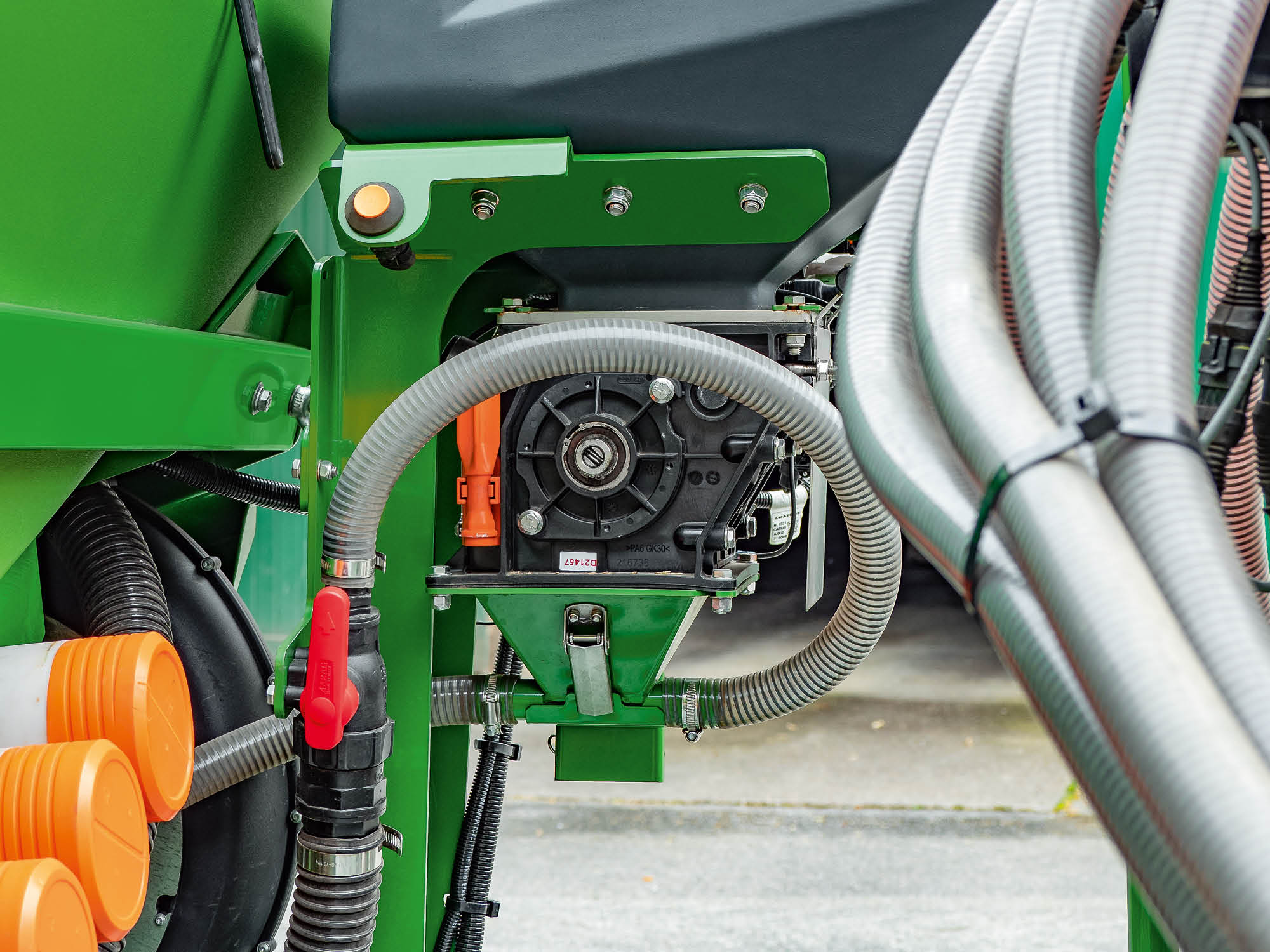 Micro plus jest wyposażony w centralne dozowanie elektryczne pod łatwo dostępnym zbiornikiem o pojemności 110 l. Otwór załadowczy o średnicy 195 mm umożliwia łatwe i szybkie napełnianie. Sterowanie rozsiewaczem mikrogranulatów odbywa się za pośrednictwem oprogramowania ISOBUS siewnika.