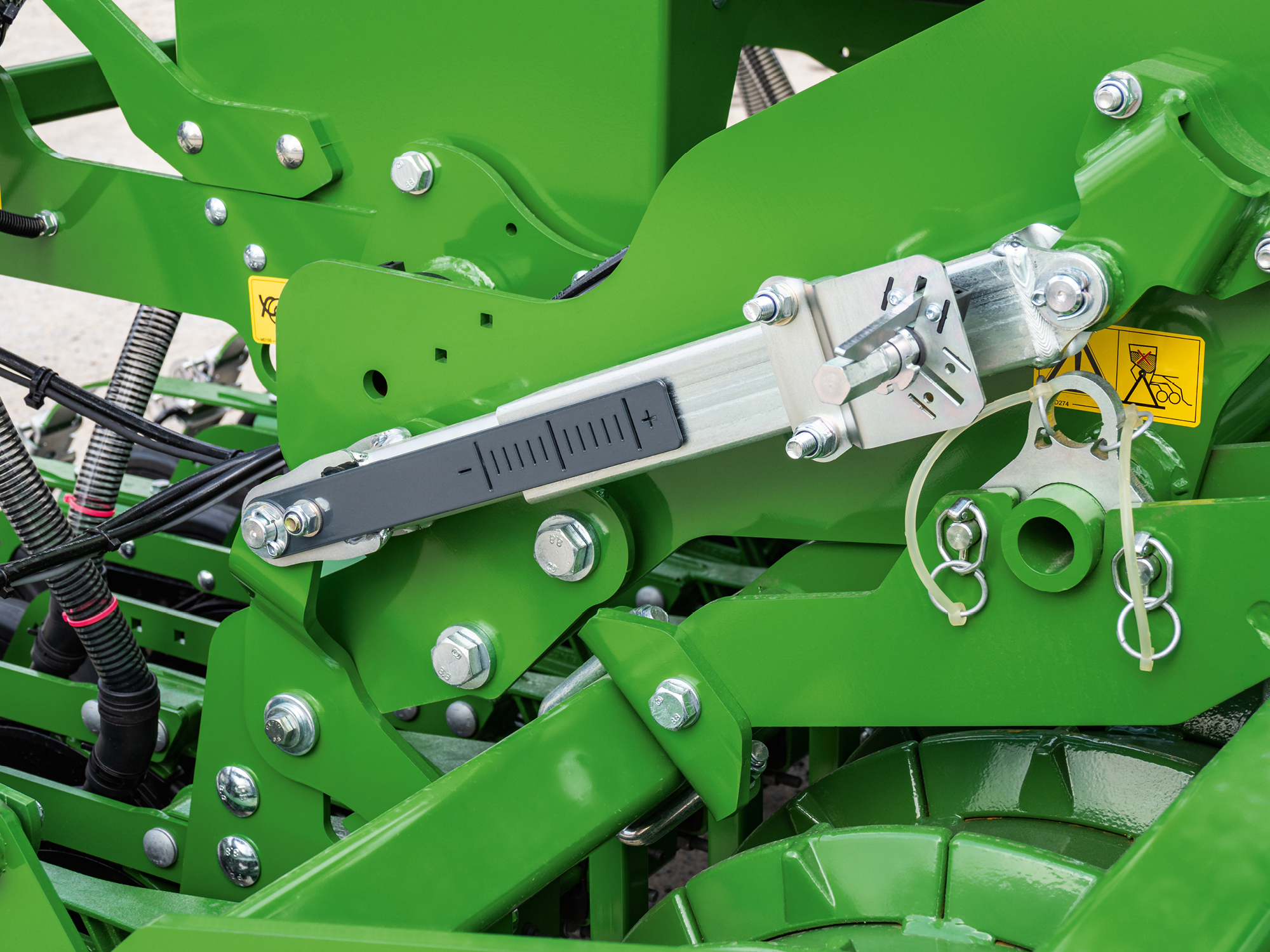 Nacisk zagarniacza jest regulowany mechanicznie, przez napięcie sprężyn. Przy hydraulicznej regulacji nacisku zagarniacza, wartość minimalna i maksymalna ograniczona jest sworzniami. Tym samym można jednym zaworem sterującym podczas pracy szybko i łatwo dopasować nacisk zagarniacza oraz redlic do zmieniających się warunków glebowych.