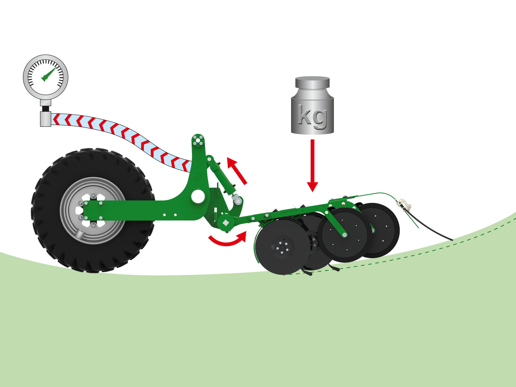 2. Hydrauliczna regulacja nacisku redlic od 0 do 100 kg
