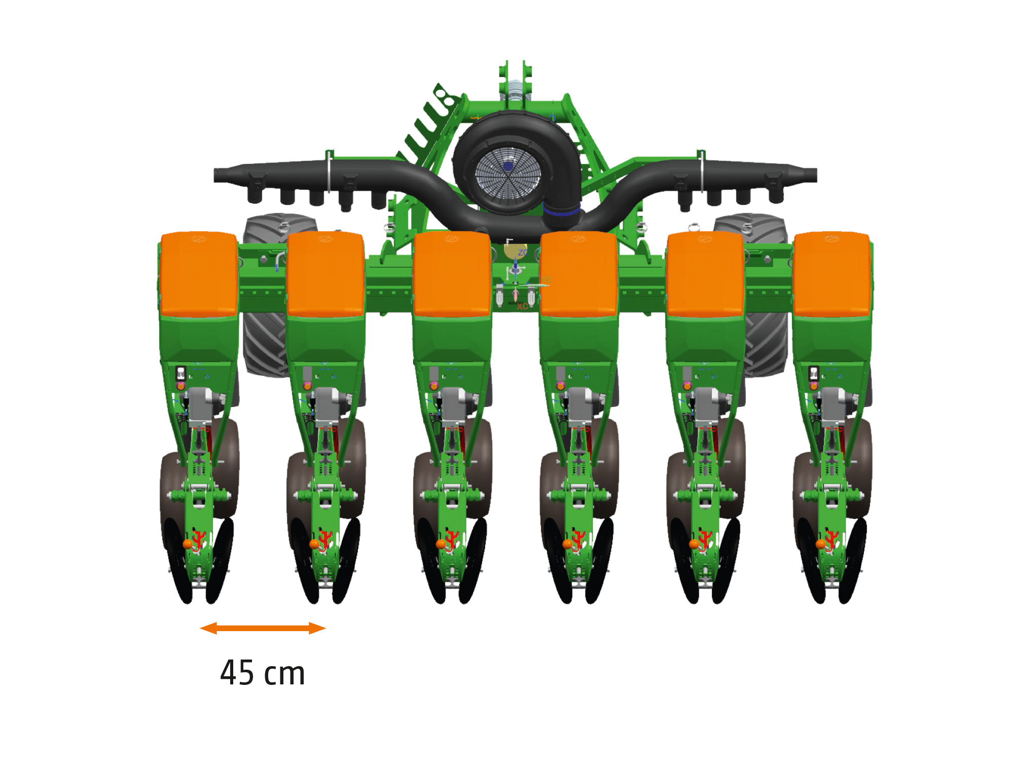- Zapobiega brakom nasion w każdym otworze tarczy i ich nadmiarowi