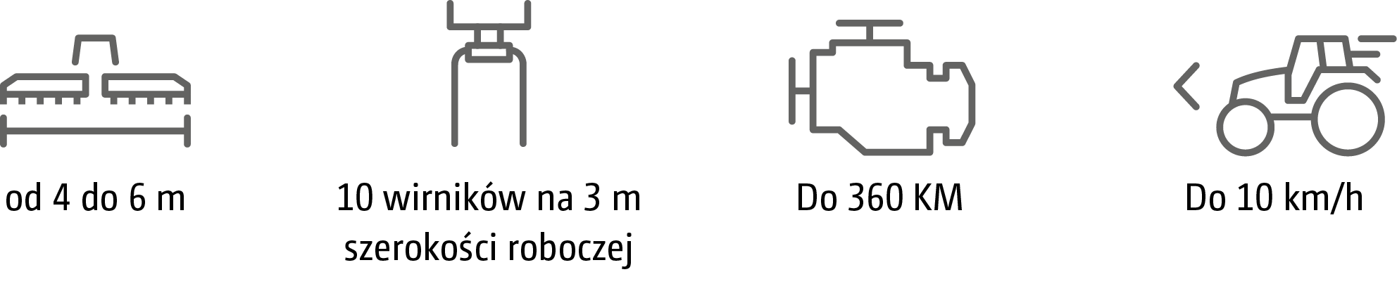 Składany kultywator wirnikowy KG 02-2 o szerokości roboczej wynoszącej 4 m, 5 m lub 6 m wyróżnia się niezwykle wysoką wydajnością powierzchniową. System Cultimix w kultywatorze wirnikowym jest symbolem dużej przepustowości i niezrównanej stabilności.