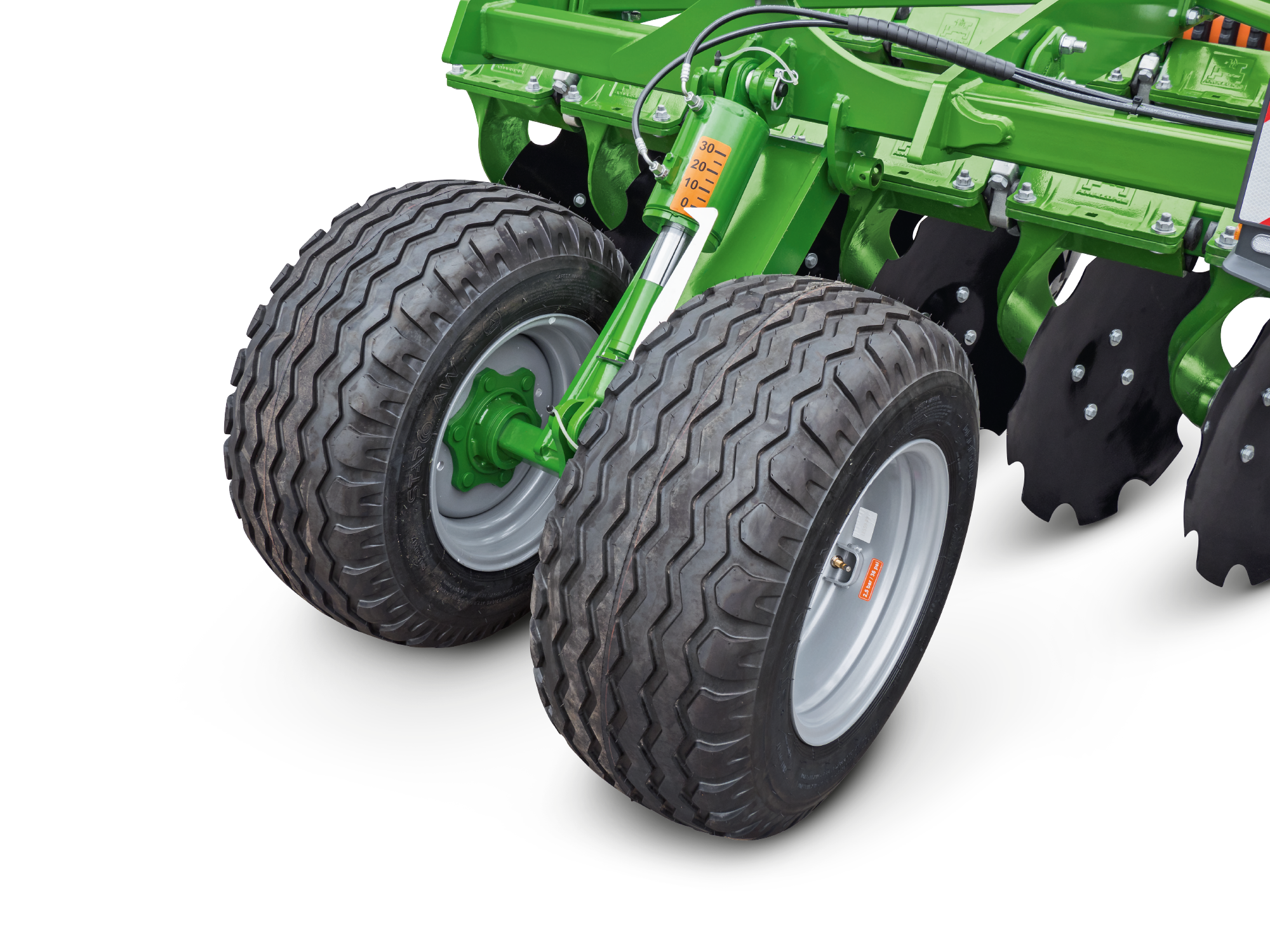 Zintegrowane podwozie środkowe wyposażone w ogumienie 700/40-22,5, 550/45-22,5 lub 400/60-22,5 zapewnia zwrotność maszyny na polu i na drodze. Pozycja podwozia gwarantuje dobry rozkład masy i pozwala na zastosowanie wałów AMAZONE, aby w zależności od warunków glebowych móc wybrać odpowiednie wały. Aby unikać podskakiwania maszyny, Certos-2TX seryjnie wyposażony jest w amortyzację zaczepu, której ciśnienie może być dopasowane w zależności od sytuacji.