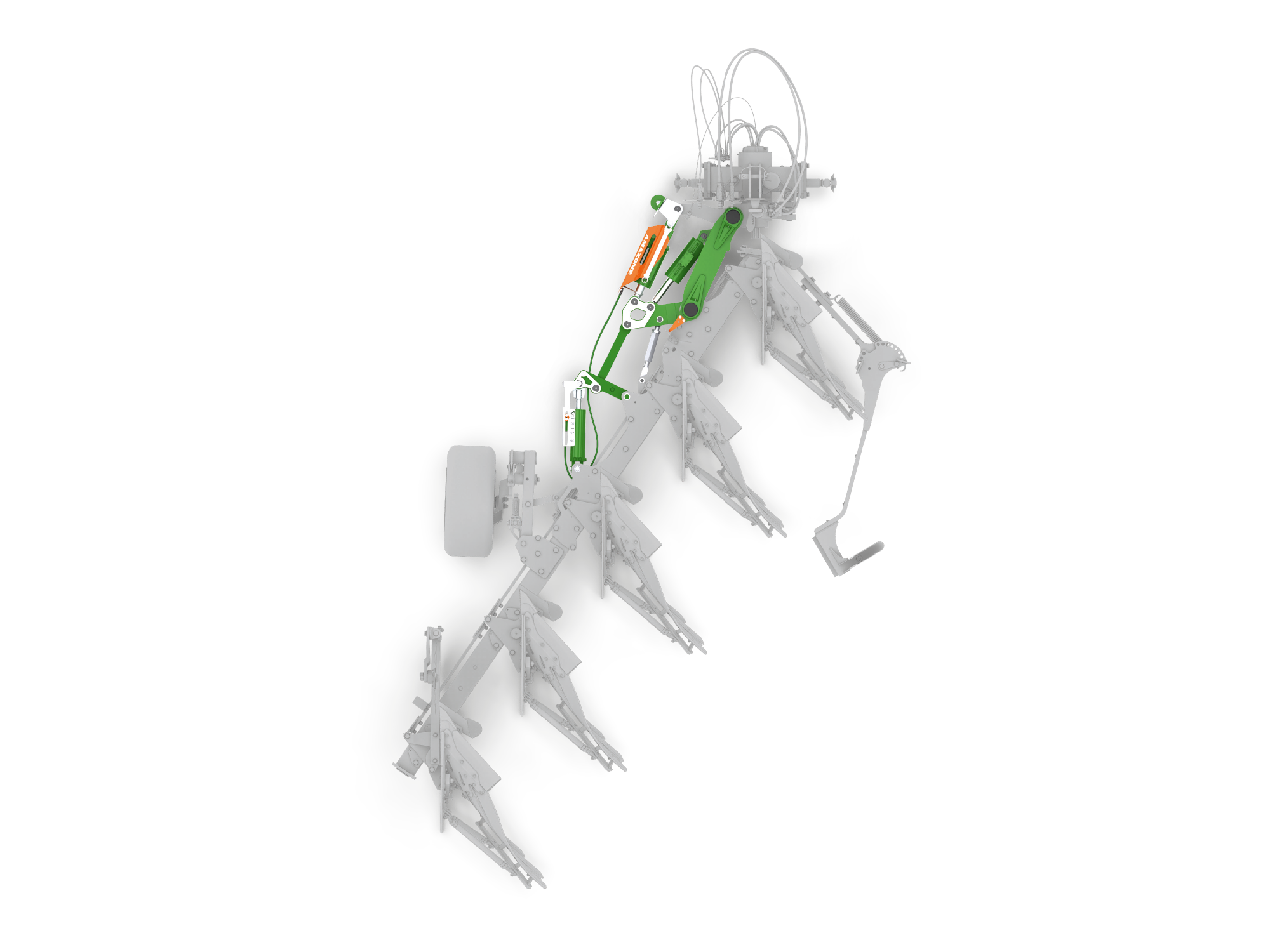 Tuż po uniesieniu pługa rama jest liniowana przed procesem obracania. Liniowanie ramy nie wpływa w żadnym stopniu na szerokość roboczą. Zapobiega to zużyciu, zwłaszcza łożysk, a jednocześnie zapewnia większy prześwit podczas obracania. Po obróceniu pługa siłownik obrotu ramy automatycznie przywraca położenie robocze ramy. W zależności od szerokości roboczej siłownik liniowania wysuwa się. Cięgło obustronnego działania przekazuje położenie szerokości roboczej na zawór i tym samym ogranicza drogę siłownika.
