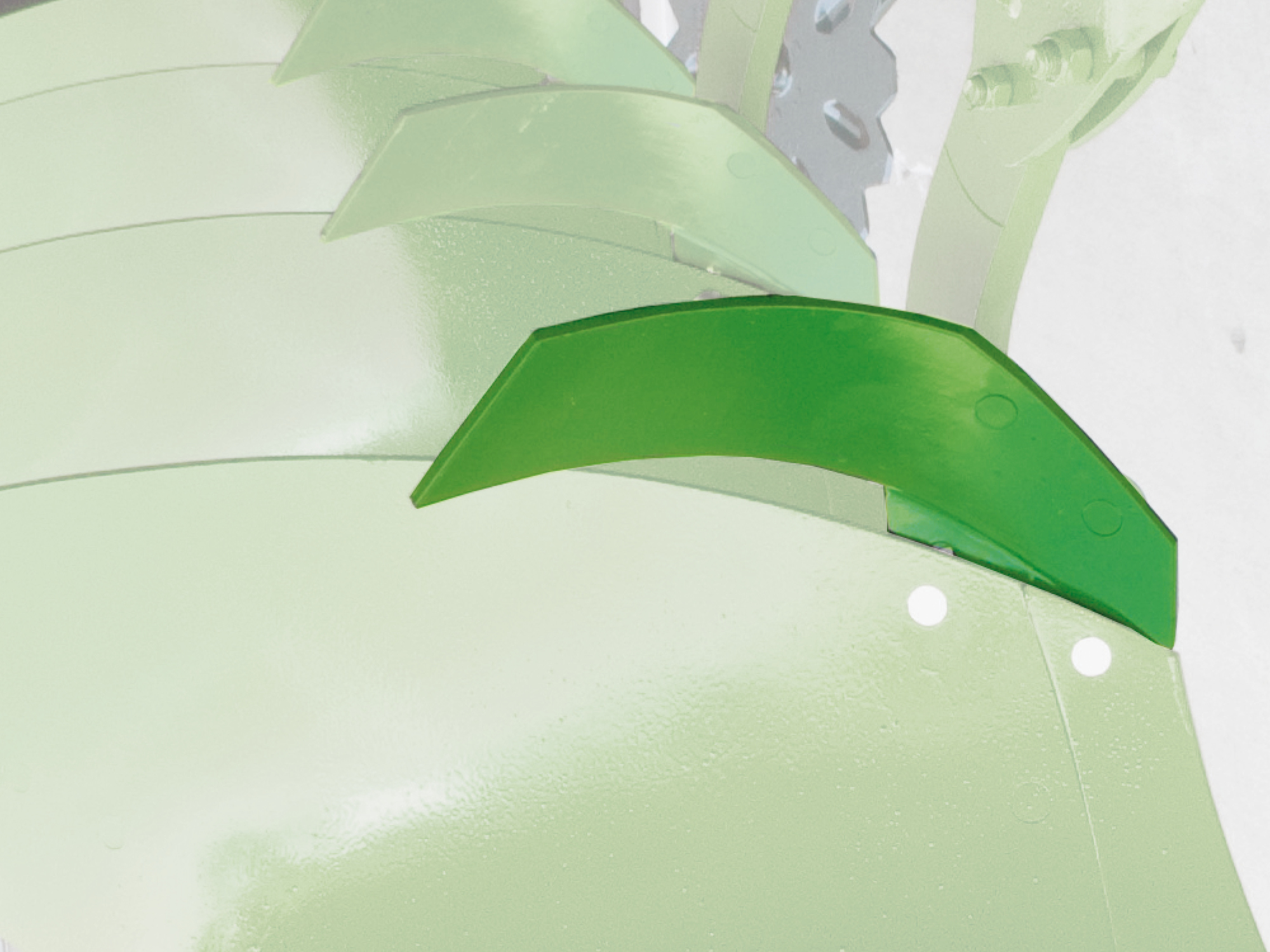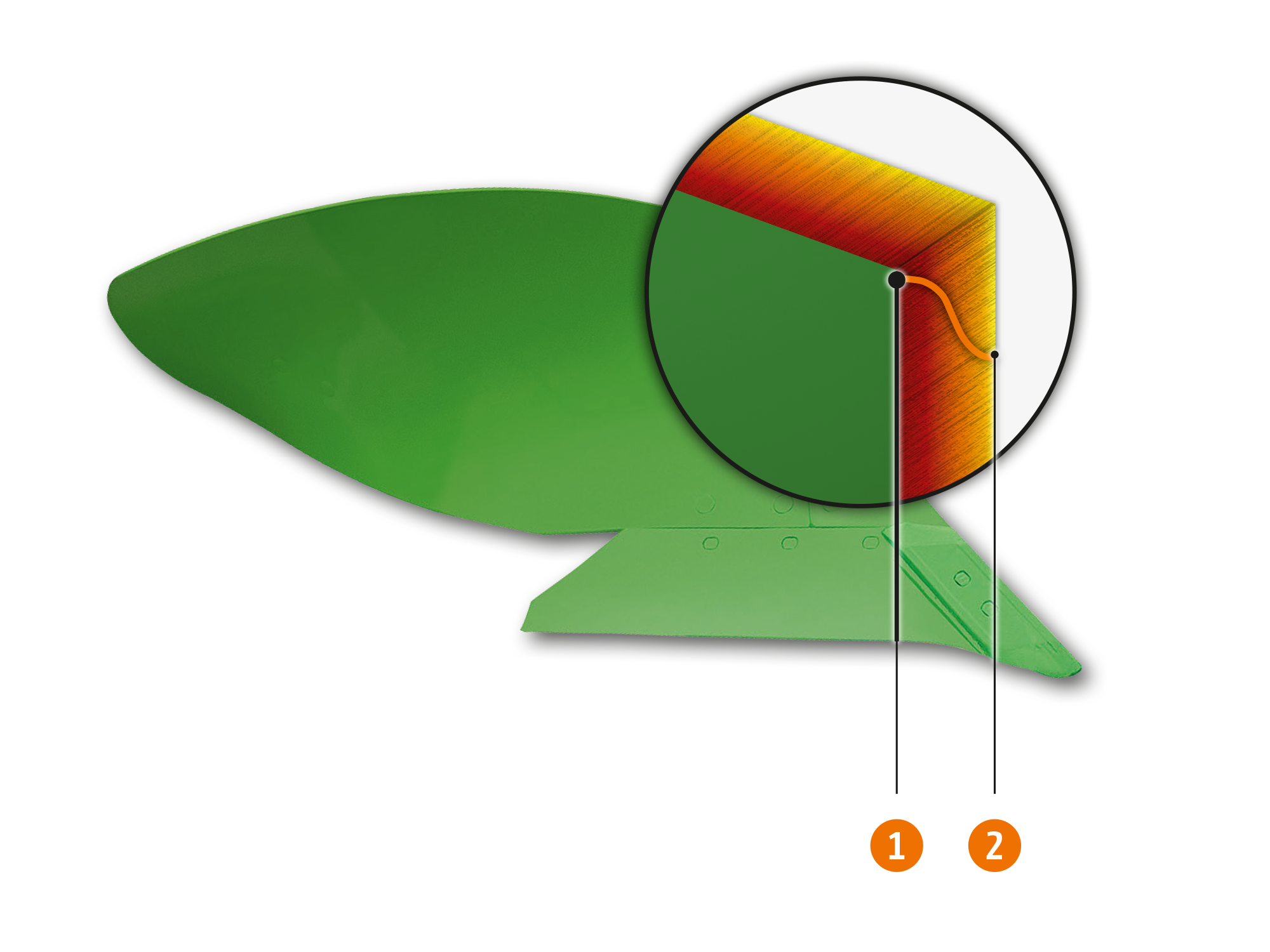 Wymienny czubek chroni płat lemiesza, obniżając koszty jego zużycia. Jego płaski kształt, samoostrzący się, wymagający niewielkiej siły pociągowej obszar wciągania oraz wzmocnienia boczne o grubości 15 mm sprawiają, że wymienny czubek, dzięki selektywnemu doborowi materiału w strefie ścierania, jest nadzwyczaj odporny, zapewniając nadzwyczajną trwałość.