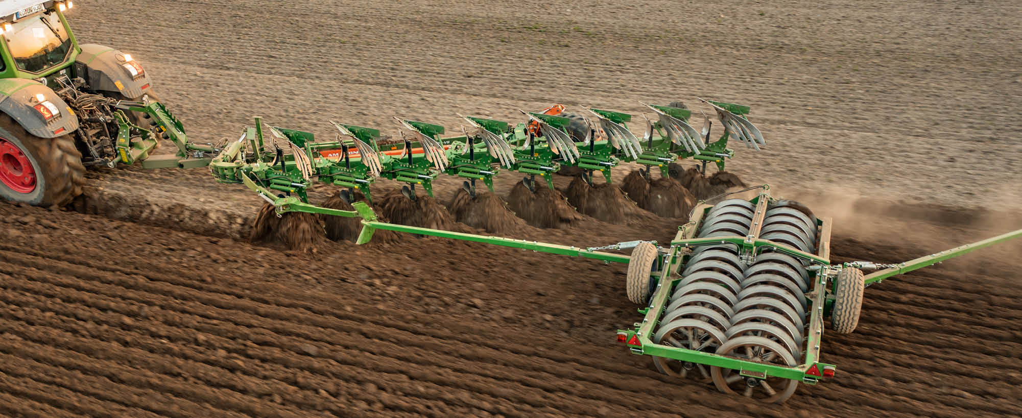 We wszystkich pługach Tyrok V szerokość robocza regulowana jest bezstopniowo z kabiny ciągnika za pomocą układu hydraulicznego. Dobrze widoczna skala ze wskaźnikiem, informuje kierowcę o ustawionej szerokości roboczej. Dzięki zintegrowanej kinematyce pługa Tyrok V automatycznie regulowane są również: punkt uciągu, szerokość robocza pierwszego korpusu, wszystkie narzędzia wstępne i koło.