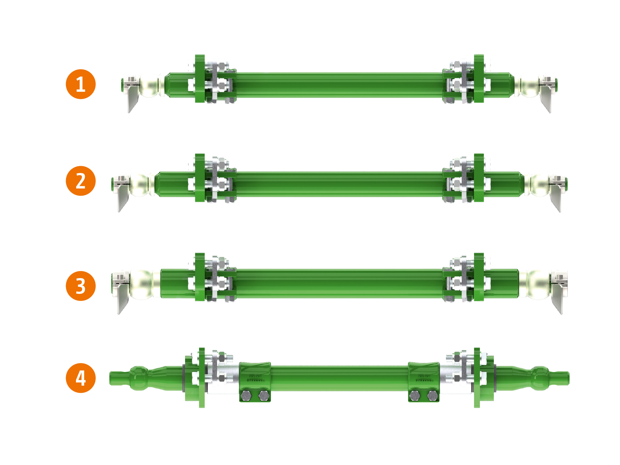 Łożyskowana oś montażowa ProtectShaft ze zintegrowaną kulą zapewnia wolniejsze zużywanie się maszyny i jej maksymalnie długą trwałość. Łożyska przegubowe działają jak elementy tłumiące i chronią materiał na poprzeczniaku i podczas jazdy po drogach. Dzięki zintegrowanej kuli, ze względu na większą średnicę, znacznie zwiększa się trwałość osi montażowej. Alternatywnie można zastosować oś montażową ze stałym trzpieniem z kulą i profilami zaczepowymi Walterscheida.